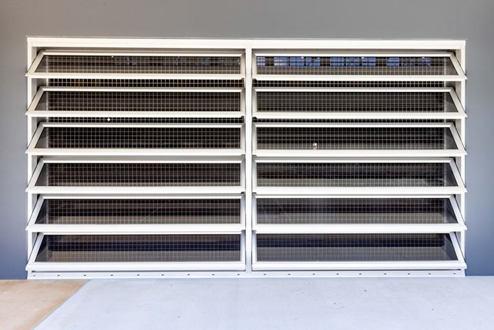 Metal-framed ventilation system with two frame depth options, delivering adjustable airflow, light control, and architectural flexibilityMaxiflow Operable Louvre